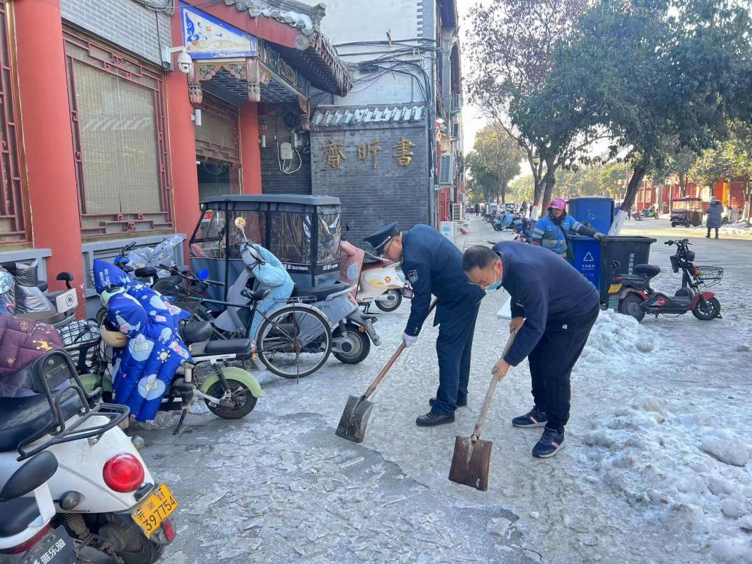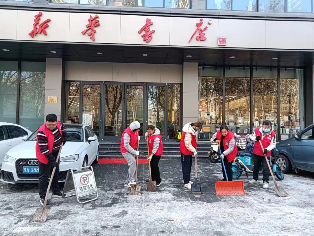 在稳妥开展安全生产工作的基础上,开封市新华书店始终秉持着“全心全意为人民服务”的宗旨,积极响应党的号召,在防范低温雨雪冰冻灾害中冲锋在前、勇担重任,积极履行国有文化企业社会职责,为周边人民群众提供力所能及的帮助和支持。12月18日早上,市新华书店第一、第二党支部先锋队员分别购书中心和开封书城门店附近街道开展志愿积雪清扫工作,街道环境面貌得到了很大改观,受到广大居民群众的充分肯定和高度评价,他们用自己的实际行动诠释了共产党员的初心使命,彰显了共产党员的先锋模范作用。