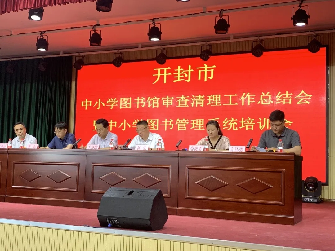 接下来,召开了开封市中小学图书馆审查清理工作总结会暨中小学及图书管理系统培训会,王炎培在会议中指出:“开封市教育体育局下发了《关于开展全市中小学图书馆审查清理的专项行动的通知》(汴教体【2019】290号),要求全市范围内的中小学按照教育部颁布的《中小学图书馆图书审查清理标准(试行)》的要求对本校图书馆内的图书、期刊、电子读物等进行清理。近期由市教体局基教科牵头,汇同装备管理中心和市新华书店7人组成检查组分别对二十五中、县街小学、十四中、金明中小学、十三中、二师附小、开封高中、北大培文八所市属中小学、杞县、祥符区、尉氏县、通许县四个县区中小学以及区属小学马市街小学、向阳路小学、文昌小学、夏理逊小学、理事厅小学等图书审查清理专项行动执行情况进行检查、指导。”并就在检查中发现学校图书馆集中存在的六点问题作出了总结和分析,最后强调:“我们不忘教育初心,牢记育人使命,为书写好教育的“奋进之笔”,为实现开封市中小学图书馆工作跨越化发展贡献我们的力量!”